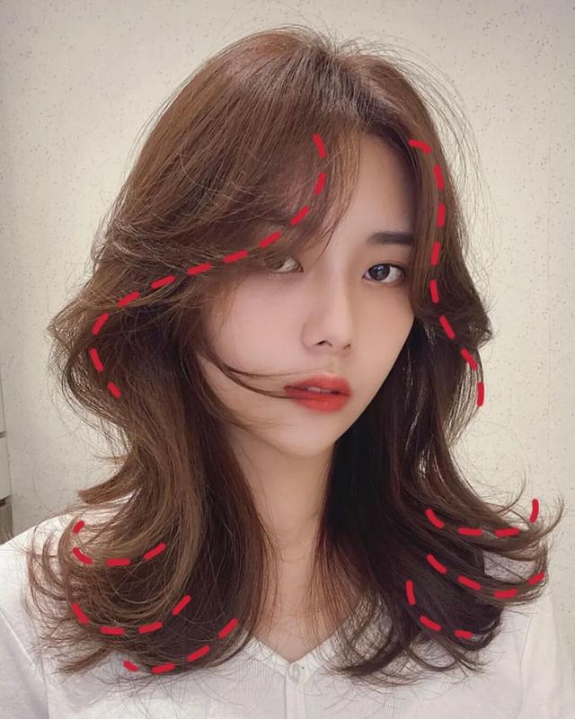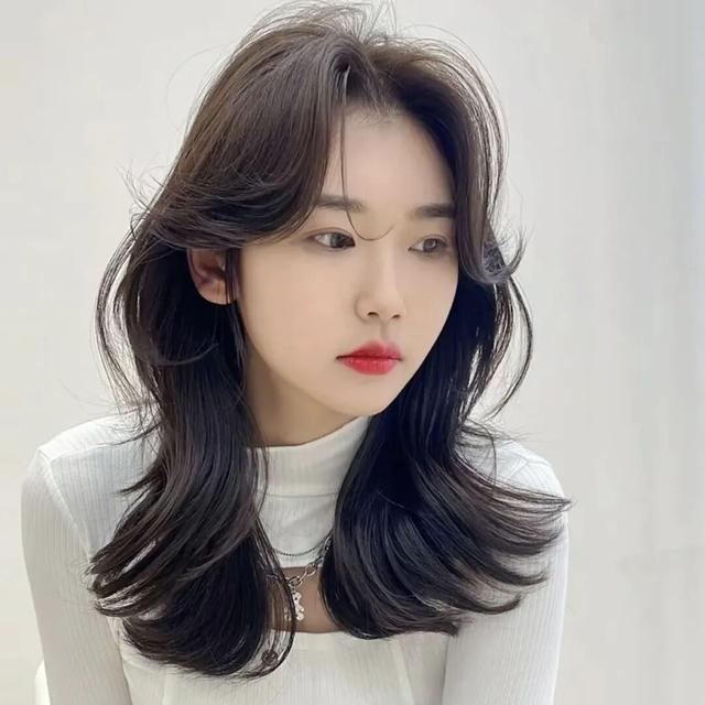 这个发型圆脸、方脸、方圆脸都可尝试,搭配八字刘海,那是一个劲儿的温柔气质,韩系满满啊!