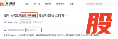 8月28日,有投资者在深交所互动易直言,公司股价持续低迷,是否经营出了状况。9月15日,公司回应称经营情况稳定,并指向半年度报告作为查询参考。