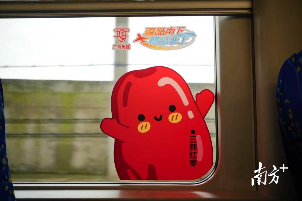 三师红枣登上大湾区“广肇-广惠线”城际列车。