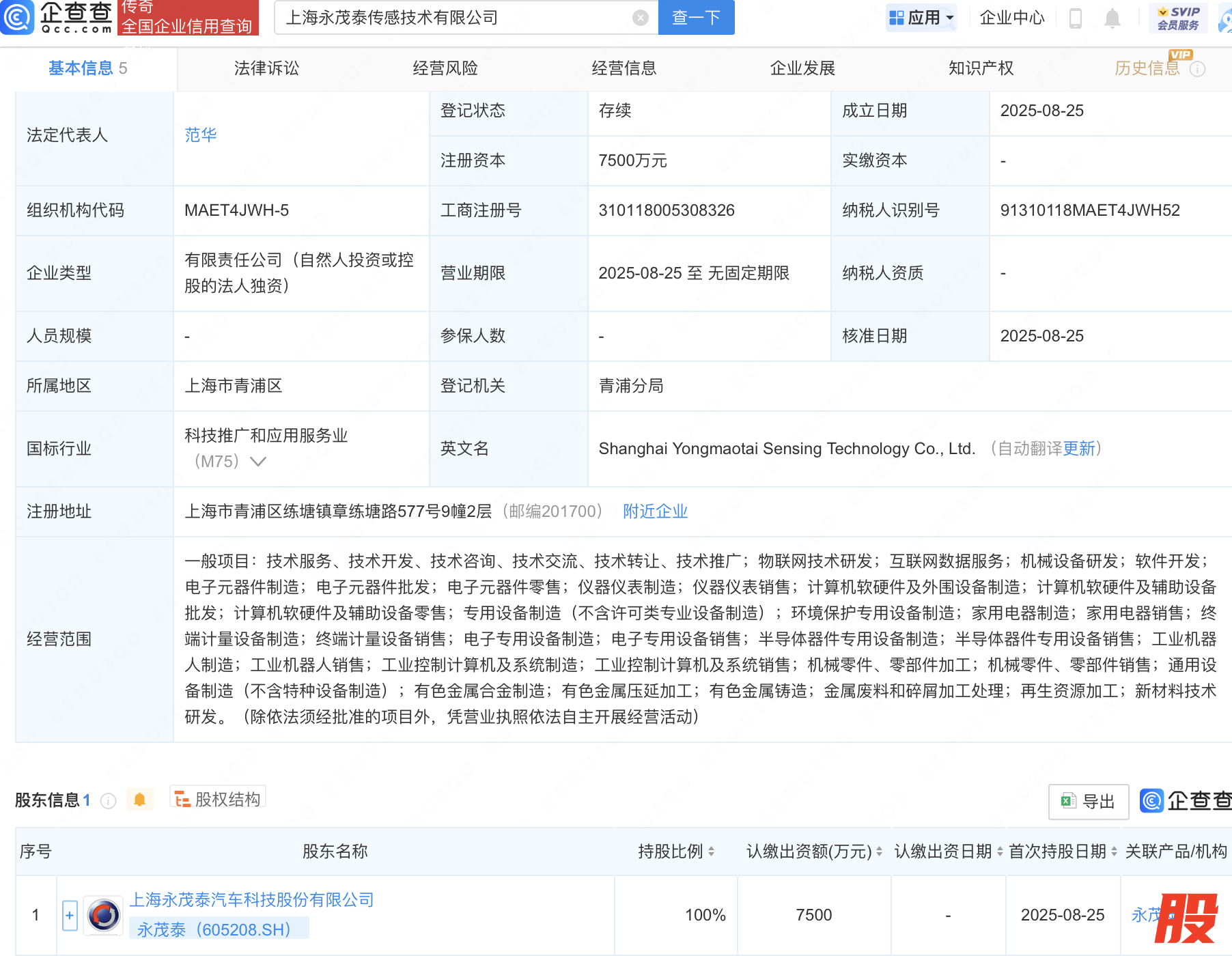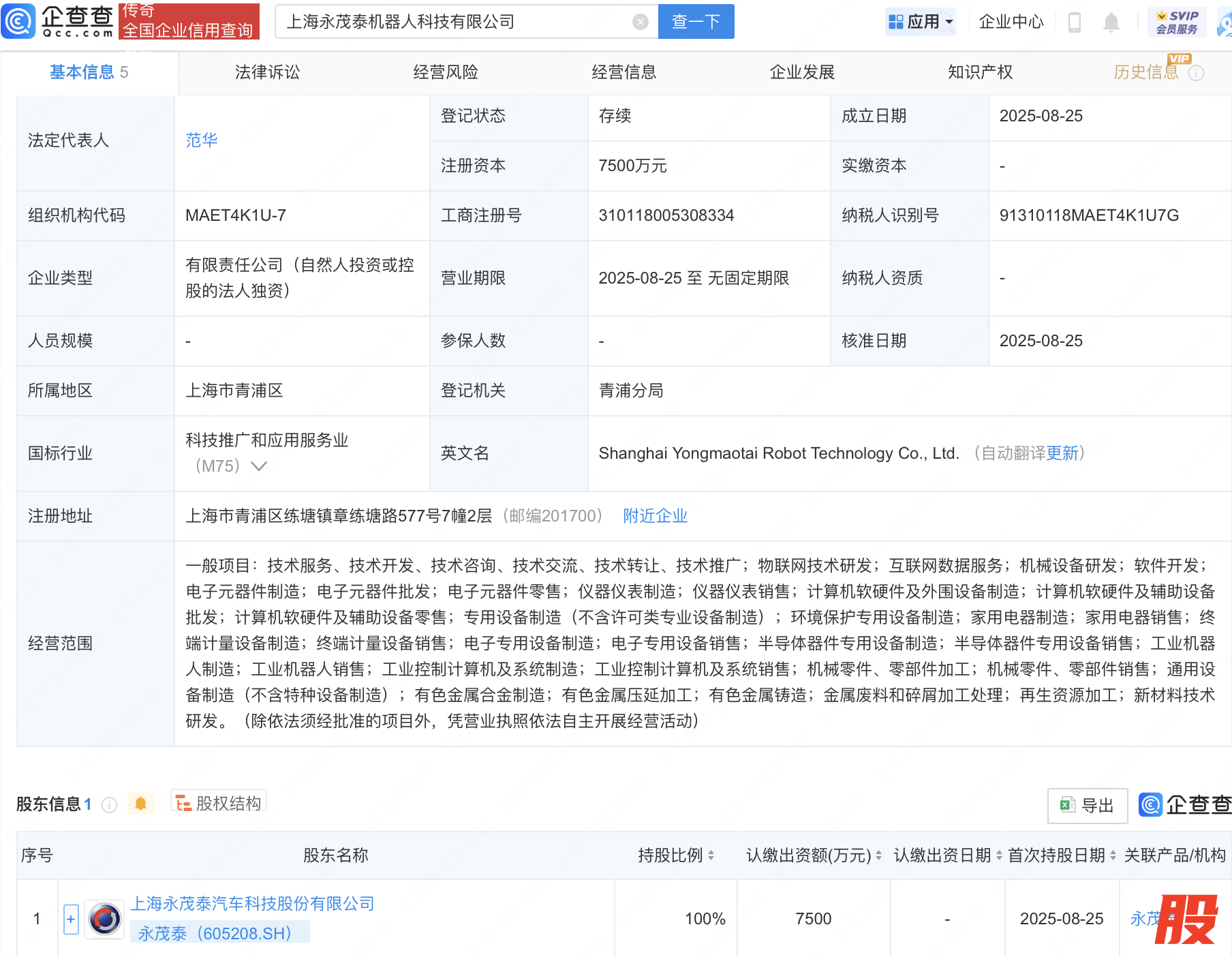 近日,上海永茂泰机器人科技有限公司、上海永茂泰传感技术有限公司成立,注册资本同为7500万元,经营范围均包含:半导体器件专用设备制造;半导体器件专用设备销售;工业机器人制造;工业机器人销售等。企查查股权穿透显示,二者皆由永茂泰(605208)全资持股。