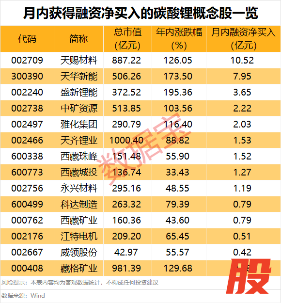 月内获得融资净买入的碳酸锂概念股出炉月内获得融资净买入的碳酸锂概念股出炉