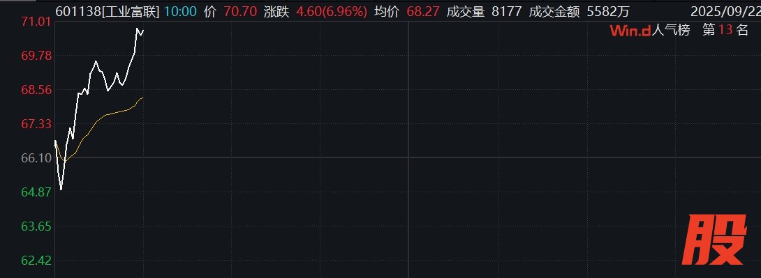 工业富联大涨7% 股价首次突破70元关口工业富联大涨7% 股价首次突破70元关口