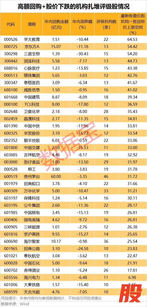 高额回购+股价下跌的机构扎堆评级股出炉高额回购+股价下跌的机构扎堆评级股出炉