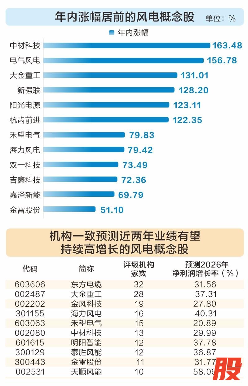 风电概念股年内表现亮眼 机构预测十股业绩有望持续高增长风电概念股年内表现亮眼 机构预测十股业绩有望持续高增长